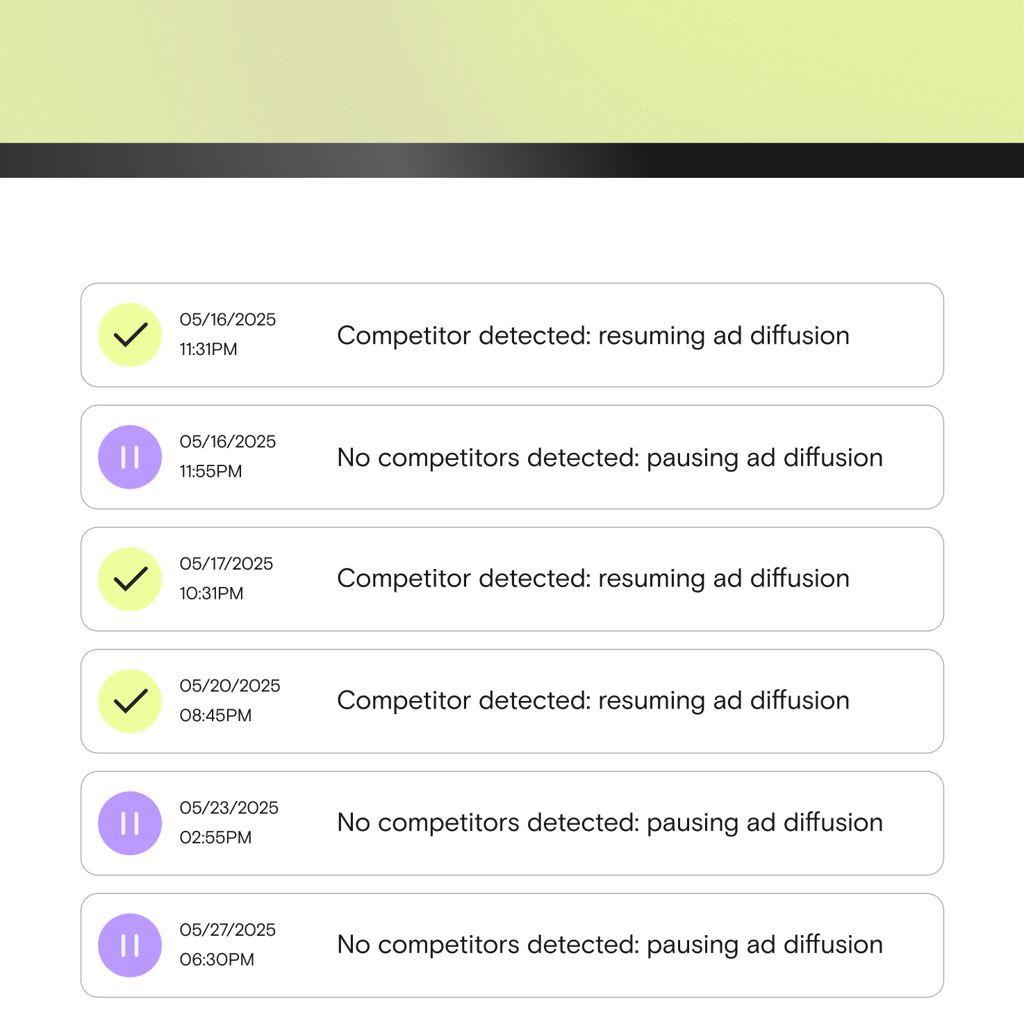 Signal suspends ads when there's no competition. Your budget is optimized without losing a single click.