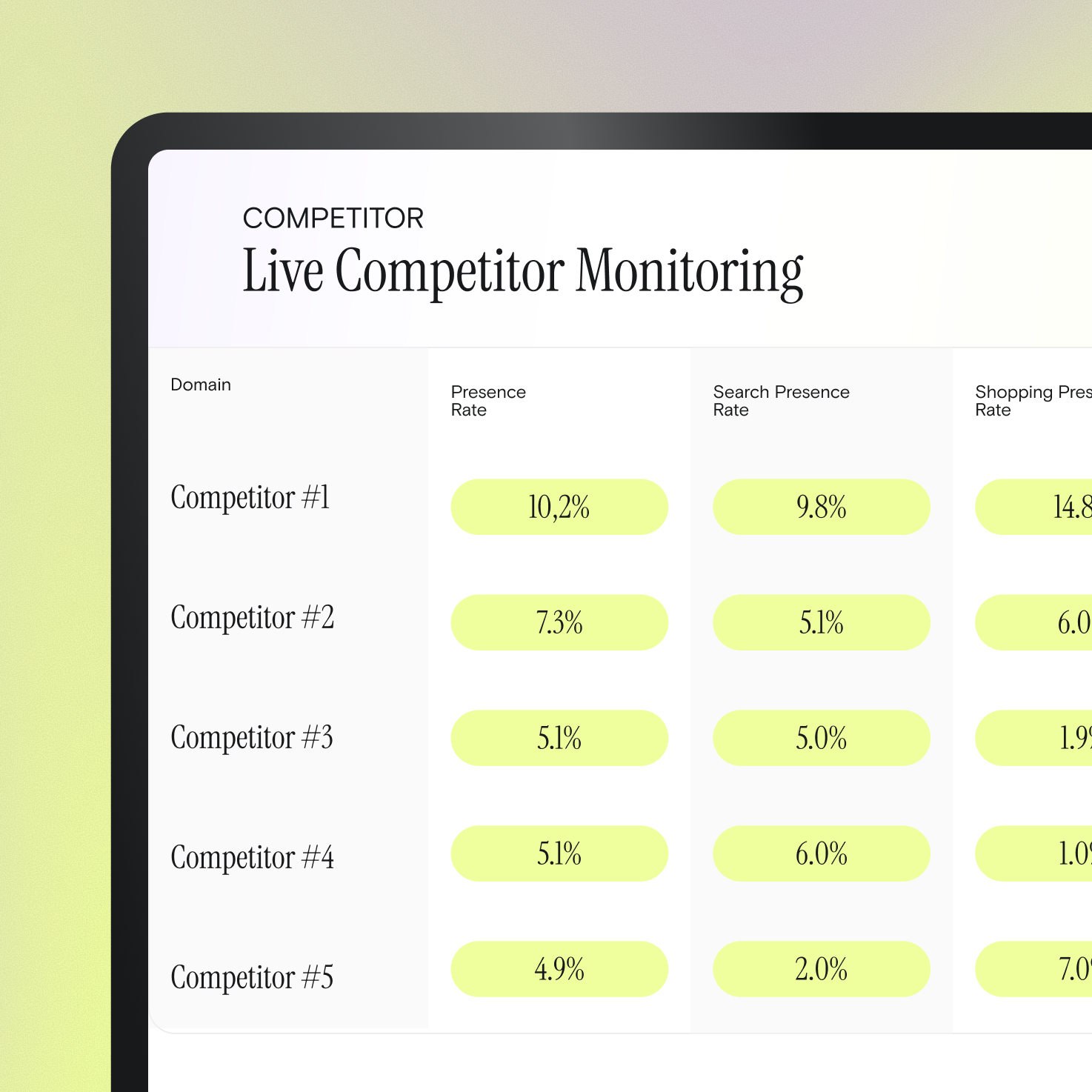 Live competitor monitoring